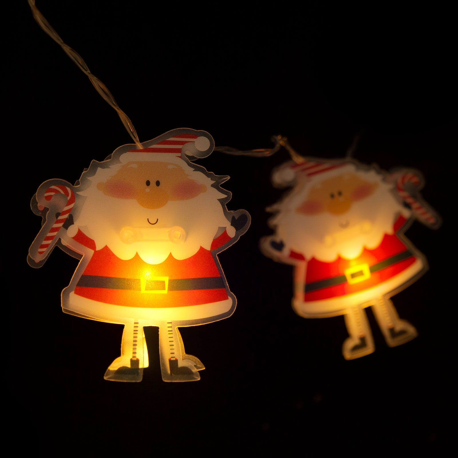 Un șnur de lumină vesel cu Moș Crăciun care pune instantaneu familia într-o dispoziție bună. Micii Moș Crăciun transparenți sunt iluminați de LED-uri albe calde, astfel încât oferă o experiență vizuală minunată din toate direcțiile din casa ta. Poate fi ideal pentru decorarea pomilor de Crăciun, ghirlande, rafturi, coroane și perdele. Datorita consumului scazut de energie al sursei de lumina LED, aceasta poate fi functionata si cu baterii o perioada indelungata.