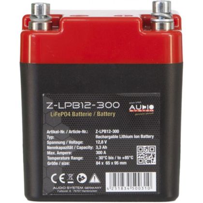 LiFePO Baterie 3,3Ah cu max 300A, BMS și IP65 0,9 kg 84x65x95mm Audio System CarStore Technology