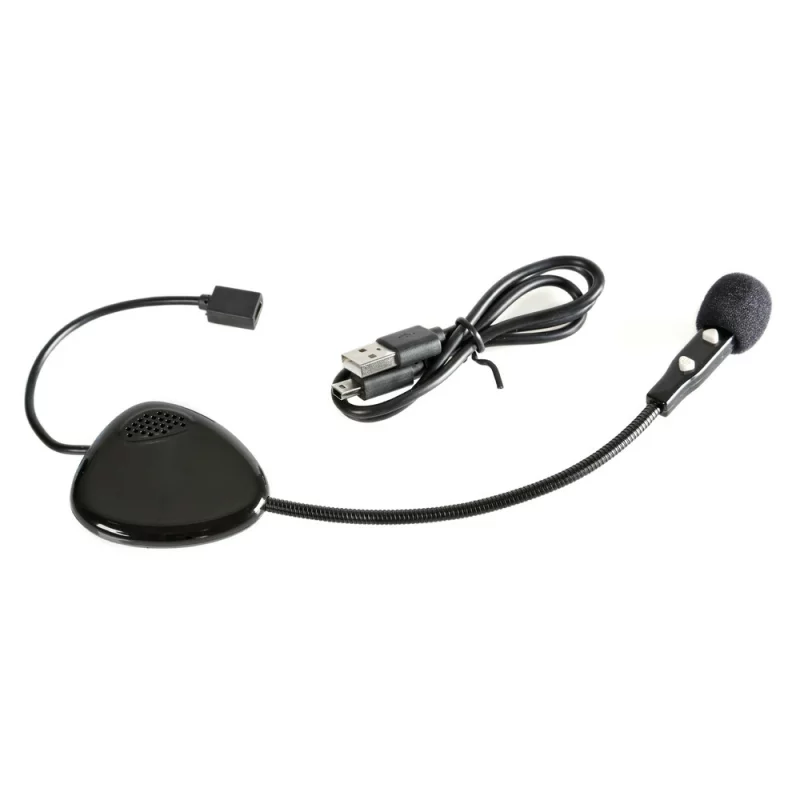 Este ideal pentru motocicliștii care doresc să primească apeluri, să asculte indicații de navigație și să se bucure de o experiență de mers mai sigură și mai confortabilă. Se montează pe cască și se încarcă simplu prin cablul USB inclus.