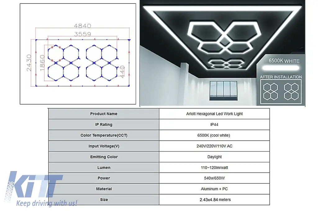 Sistem de Iluminare Plafon Hexagon / HoneyComb 3.56 x 1.86 m Performance AutoTuning