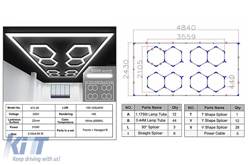 Sistem de Iluminare Plafon Hexagon / HoneyComb 3.56 x 2.10 m Performance AutoTuning