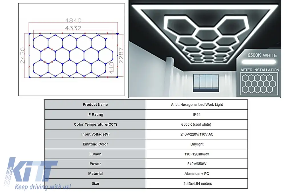 Sistem de Iluminare Plafon Hexagon / HoneyComb 4.33 x 2.28 m Performance AutoTuning