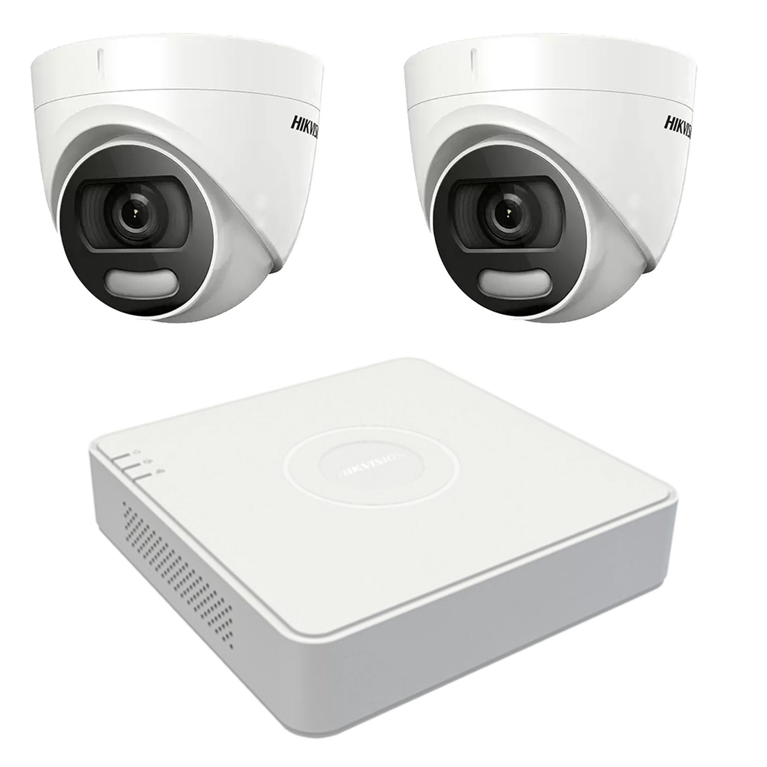 Sistem de supraveghere Hikvision 2 camere interior 5MP ColorVU, lumina alba 20m, DVR 4 canale 8 MP SafetyGuard Surveillance