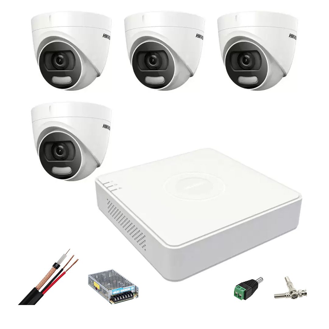 Sistem de supraveghere Hikvision 4 camere interior 5MP ColorVU, lumina alba 20m, DVR 4 canale TurboHD, accesorii SafetyGuard Surveillance