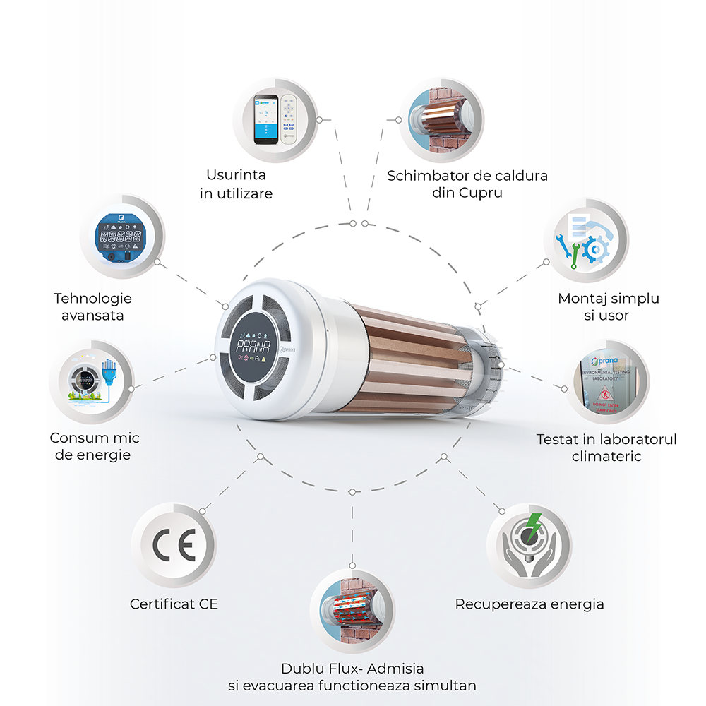 Descriere Sistem ventilatie recuperare caldura PRANA 200C