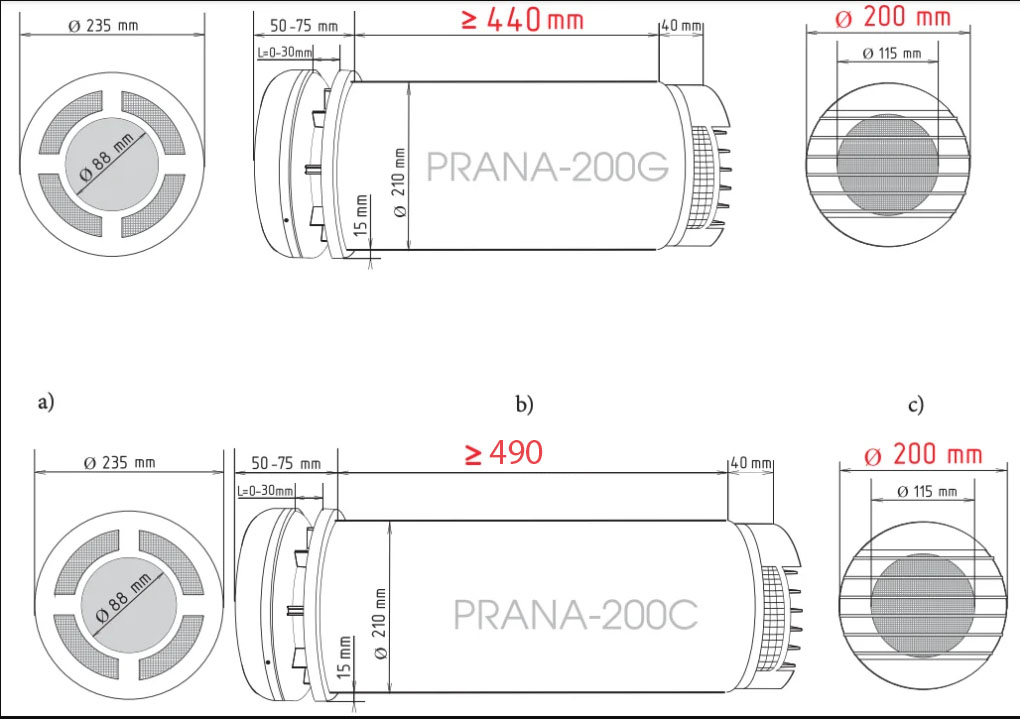 Specificatii Sistem ventilatie recuperare caldura PRANA 200C