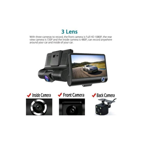 - Inregistrare 3 camere: fata (Full HD 1080P), spate si interior.