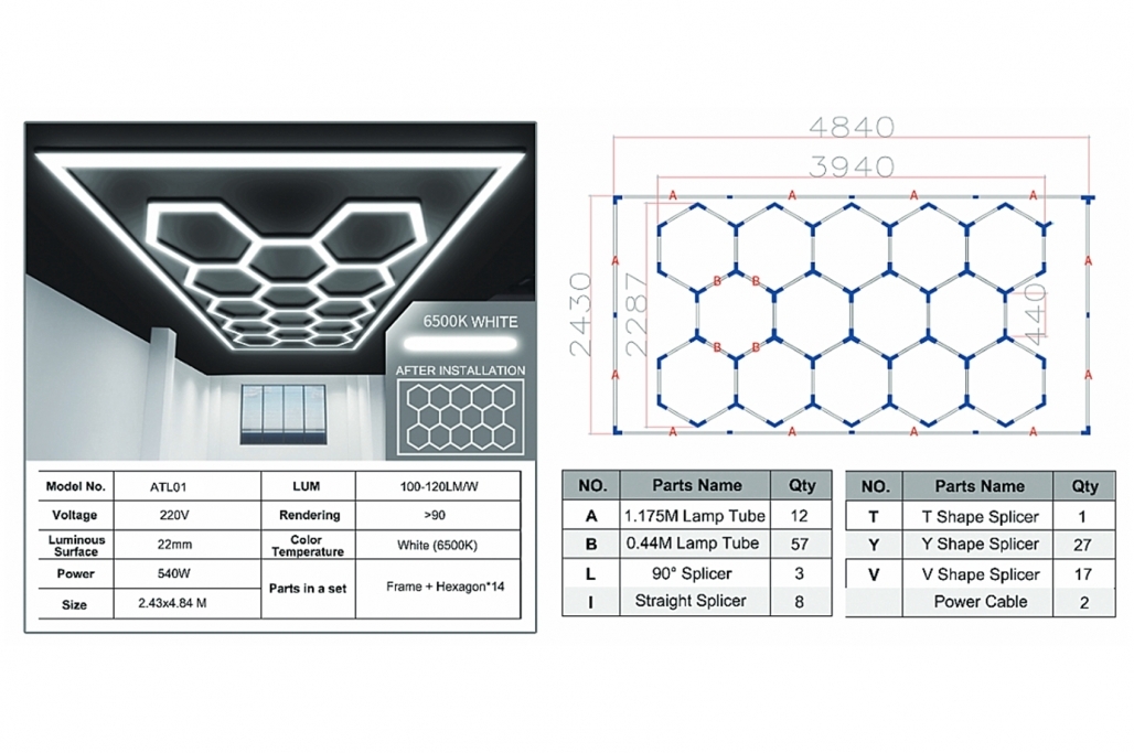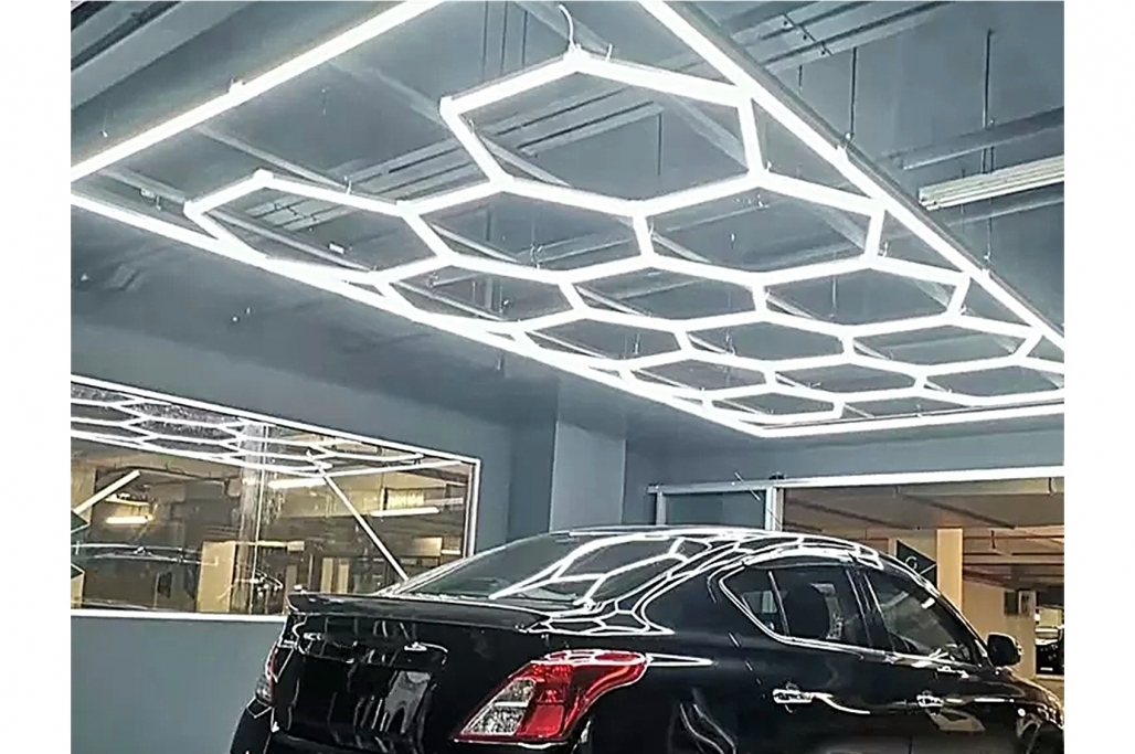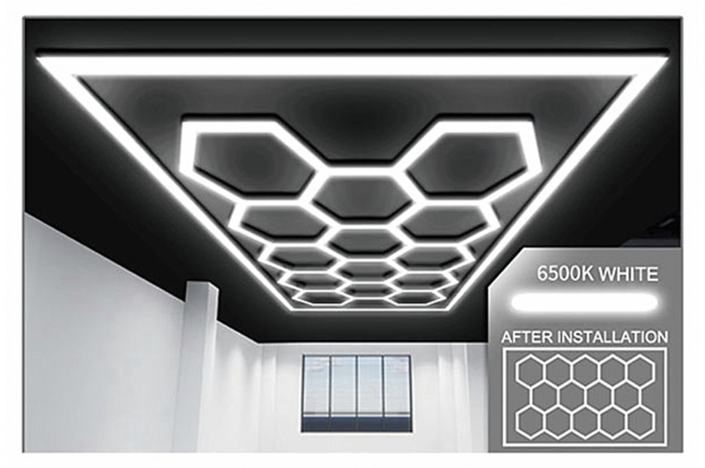 Utilizare recomandata: in showroom-uri auto, garaje, service-uri, studiouri de detailing, ateliere si spatii industriale unde este necesar un sistem LED hexagonal cu aspect profesional si lumina de calitate.