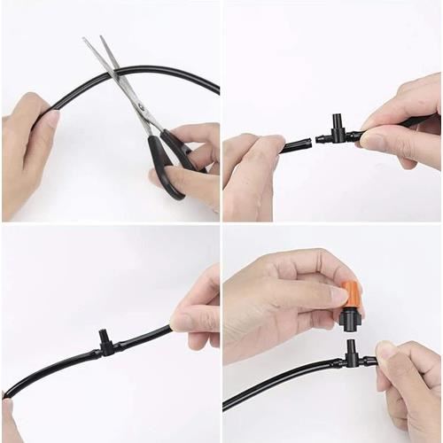 - MONTAJ USOR - kitul include coliere (fasii), datorita carora puteti instala cu usurinta perdeaua. Puneti furtunul in locul potrivit pentru a utiliza sistemul de racire. Conexiune directa la un furtun de gradina si un robinet de ½" .