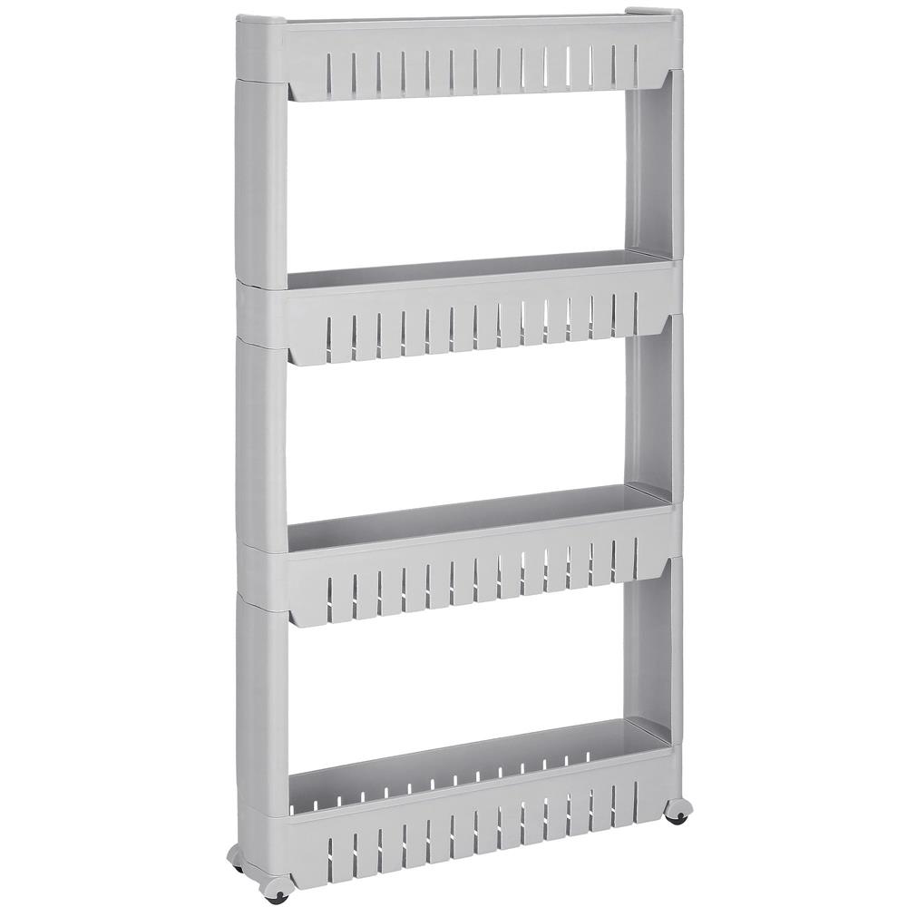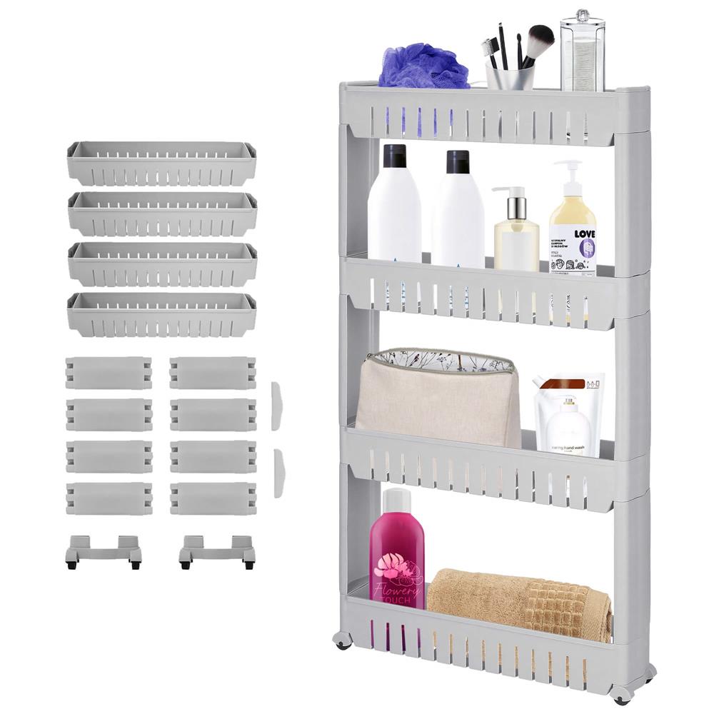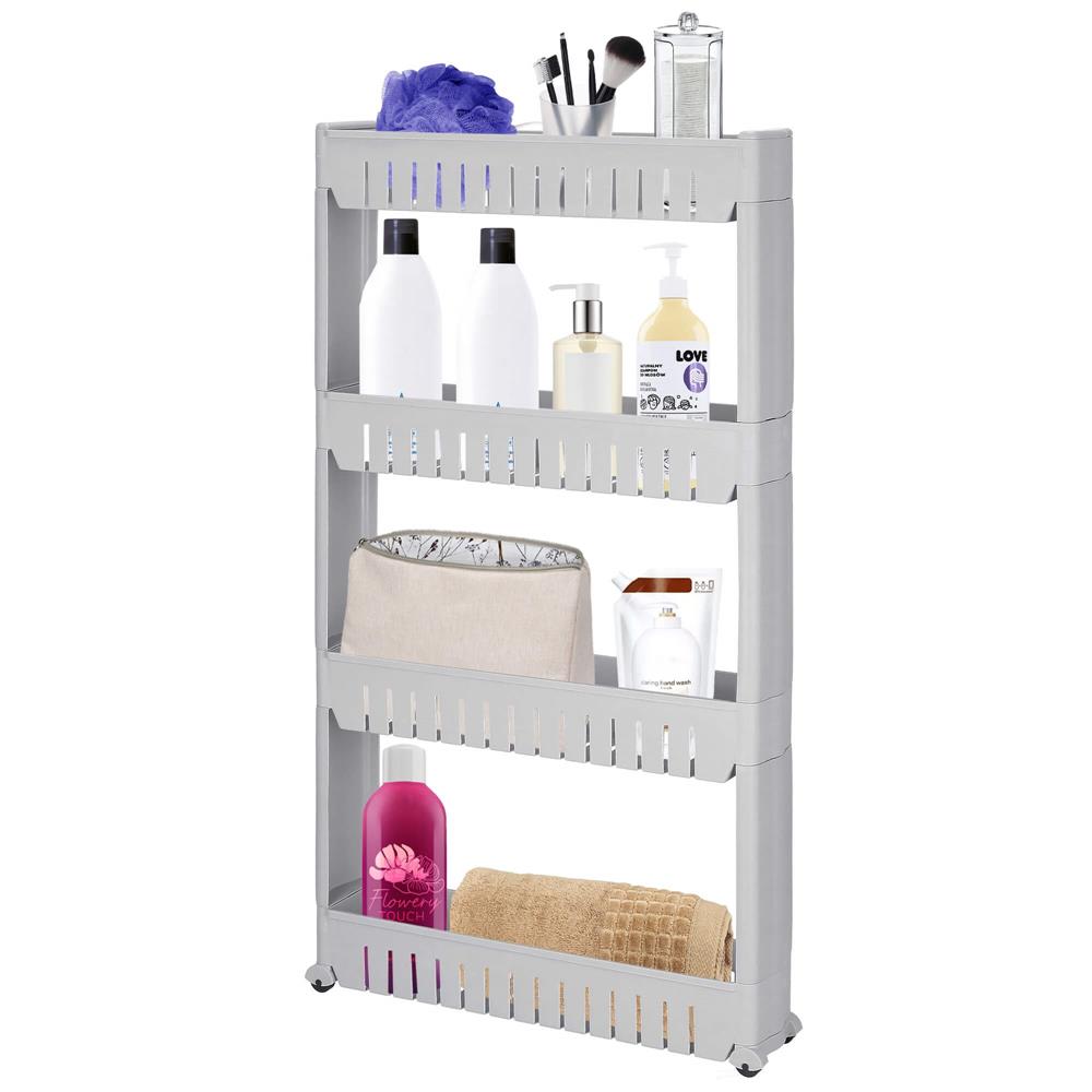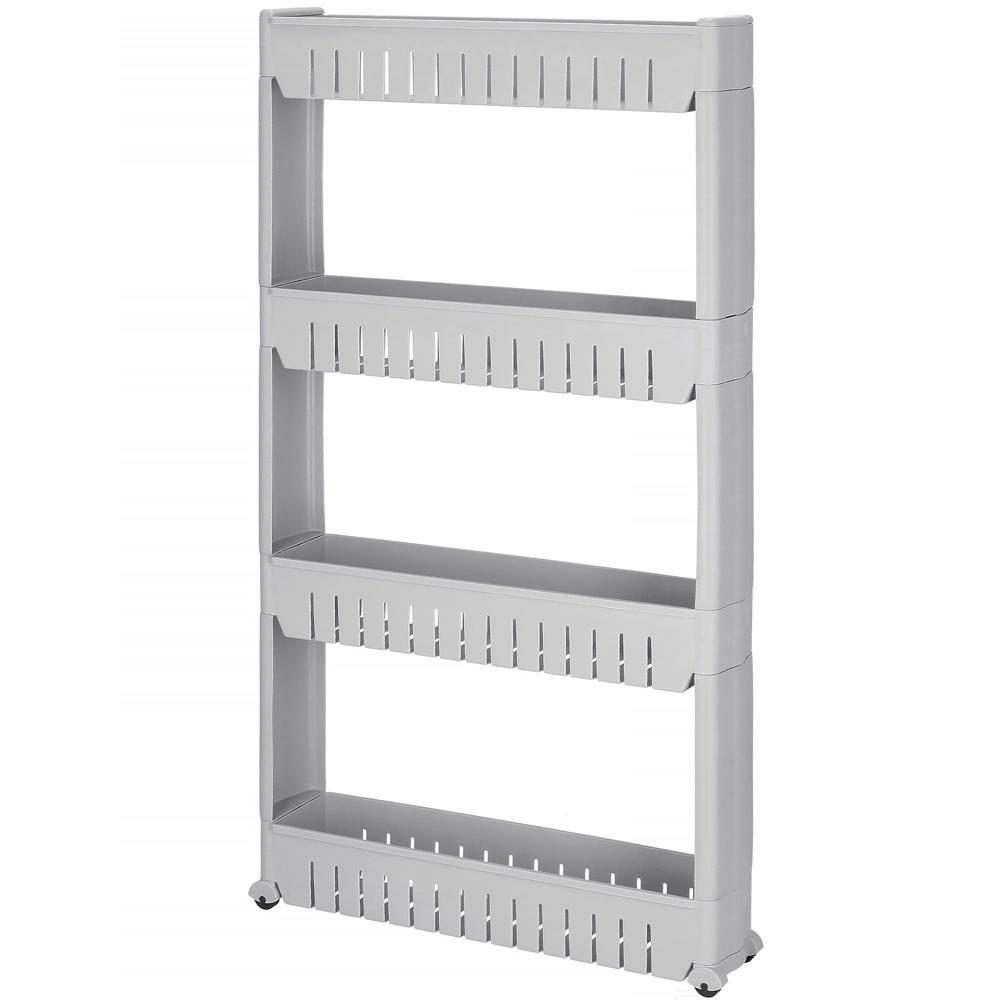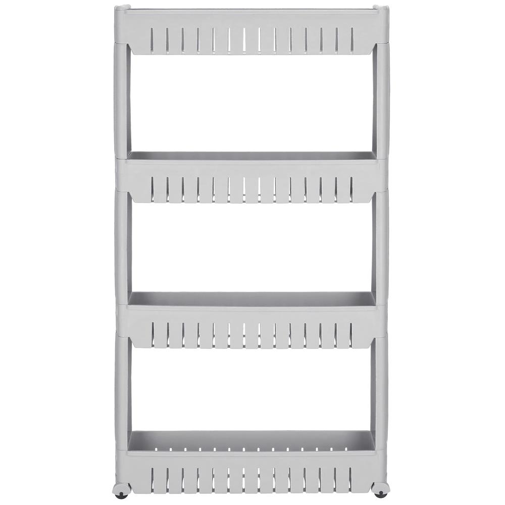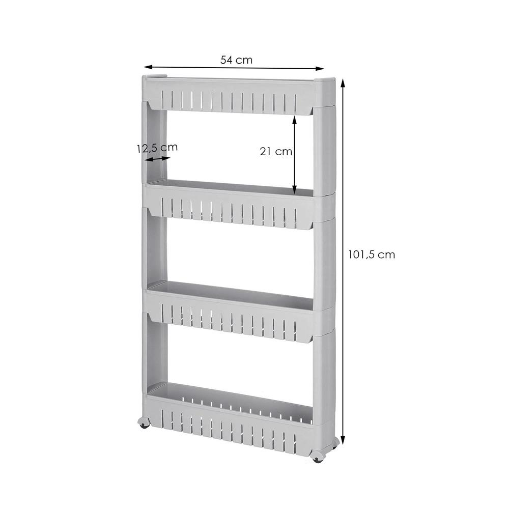 Sistem rafturi de depozitare cu roti pentru bucatarie sau baie cu 4 polite, 102x54x13 cm, gri Household NewTrend