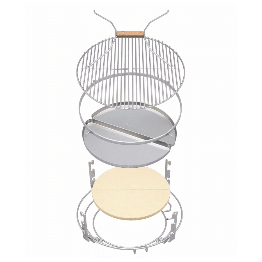 Astfel veți obține toate avantajele noului sistem cu grătarul Monolith LeCheg din anii anteriori. Setul conține sistemul complet și, prin urmare, tot ce aveți nevoie pentru un upgrade al gratarului dvs: 1 cadru metalic, 1 inel, 1 mâner tip păianjen, 2 pietre deflectoare, 2 tăvi, 2 grile.