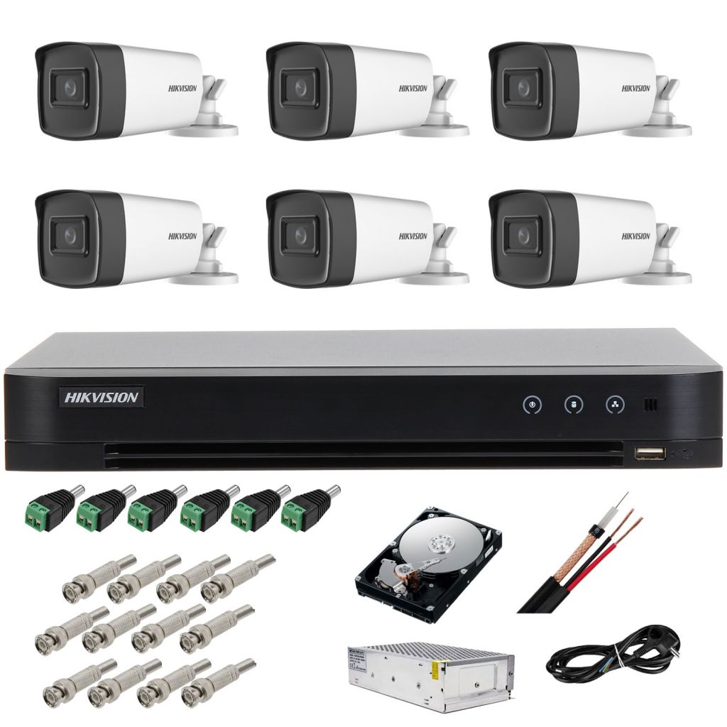 Sistem supraveghere 5MP Hikvision Turbo HD cu 6 camere Bullet IR 40m
