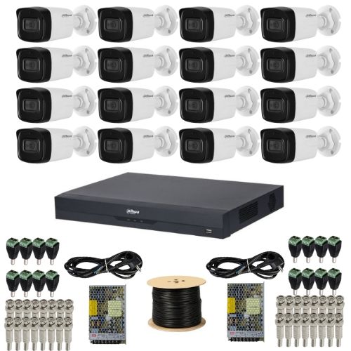 Sistem supraveghere analogic Dahua, imagini ultra-clare! Acest kit de supraveghere Dahua include 16 camere HAC-HFW1800TL-A-0360B cu rezolutie 4K Ultra HD, un DVR XVR5216AN-4KL-I3 cu functii AI pentru detectie inteligenta si toate accesoriile necesare instalarii. Ideal pentru protectia locuintei sau a spatiilor comerciale, acest sistem ofera imagini detaliate, vizibilitate excelenta pe timp de noapte si o monitorizare fiabila 24/7.