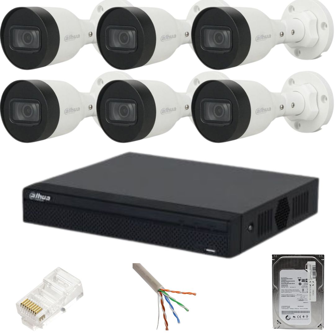 6X Camera de supraveghere Dahua IPC-HFW1230S, IP Bullet 2MP, CMOS 1/2.8”, IR 30m, IP67, PoE 1X NVR cu 8 canale PoE, 1HDD, Dahua NVR2108HS-8P-S3 1X Cablu UTP CAT5E CUPRAT 0.5mm 24AWG rola 100 metri ROVISION 1X Hard disk 1 TB 12X Mufa RJ45 cat5DESCRIERE: