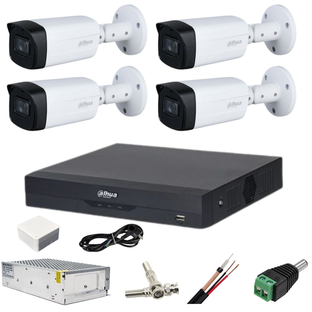 Alege un sistem de supraveghere Dahua complet, potrivit pentru locuinte, curti, hale, magazine sau sedii de firma. Kitul include 4 camere de supraveghere 5MP pentru exterior, cu tehnologie Starlight pentru imagini mai clare in lumina scazuta, iluminare IR pana la 80 m si un DVR Dahua WizSense capabil de inregistrare la rezolutie inalta. Pachetul vine cu accesorii esentiale pentru montaj, astfel incat instalarea sa fie mai rapida si mai practica.