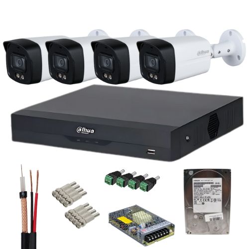 Daca ai nevoie de un sistem de supraveghere cu 4 camere fiabil, cu imagini color pe timp de noapte, sunet si stocare inclusa, acest pachet Dahua este o alegere foarte buna pentru securitate completa si instalare rapida.