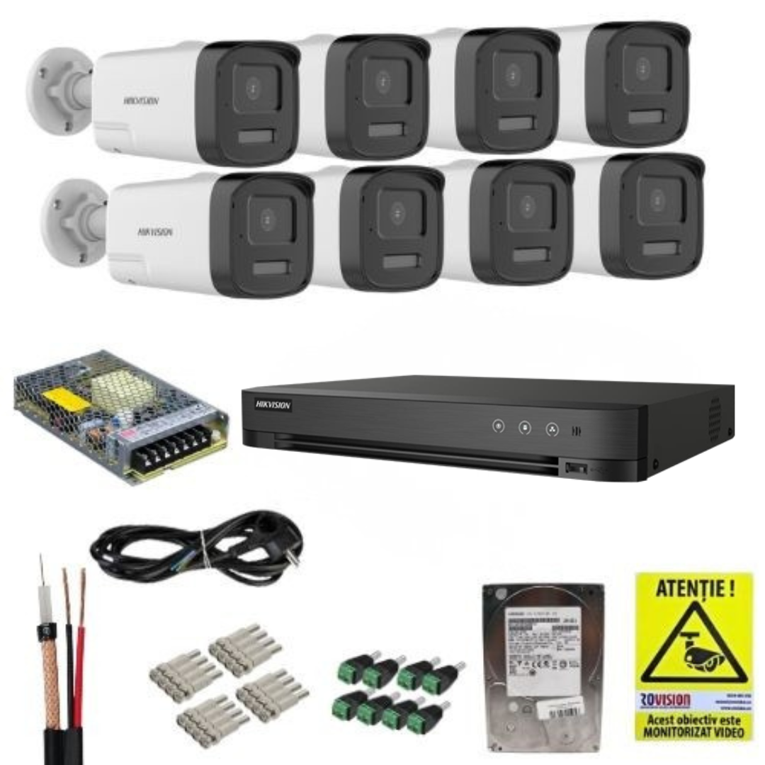 Sistem supraveghere Hikvision 3K cu 8 camere, audio bidirecțional și HDD 1TB