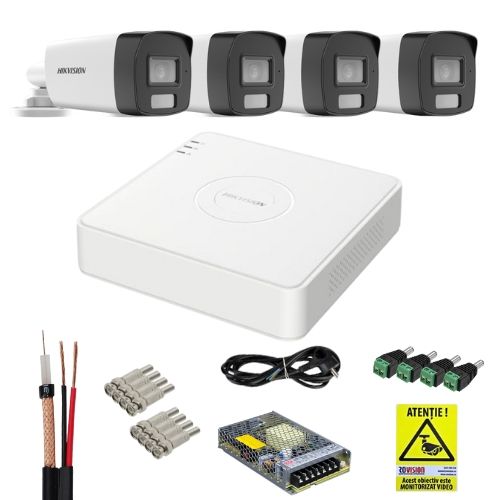 Sistem supraveghere Hikvision 4 camere 4K Dual Light cu DVR AcuSense