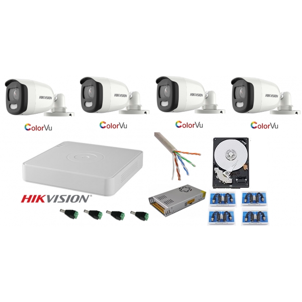 Sistem supraveghere Hikvision 4 camere 5MP Ultra HD Color VU full time ( color noaptea ) cu accesorii SafetyGuard Surveillance