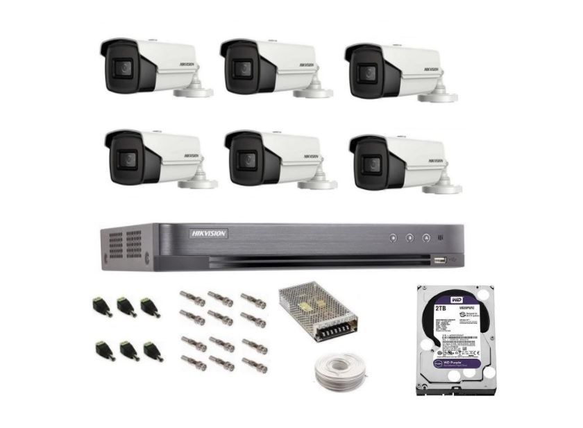 Sistem supraveghere Hikvision 4K cu 6 camere IR 60 m, HDD 2 TB