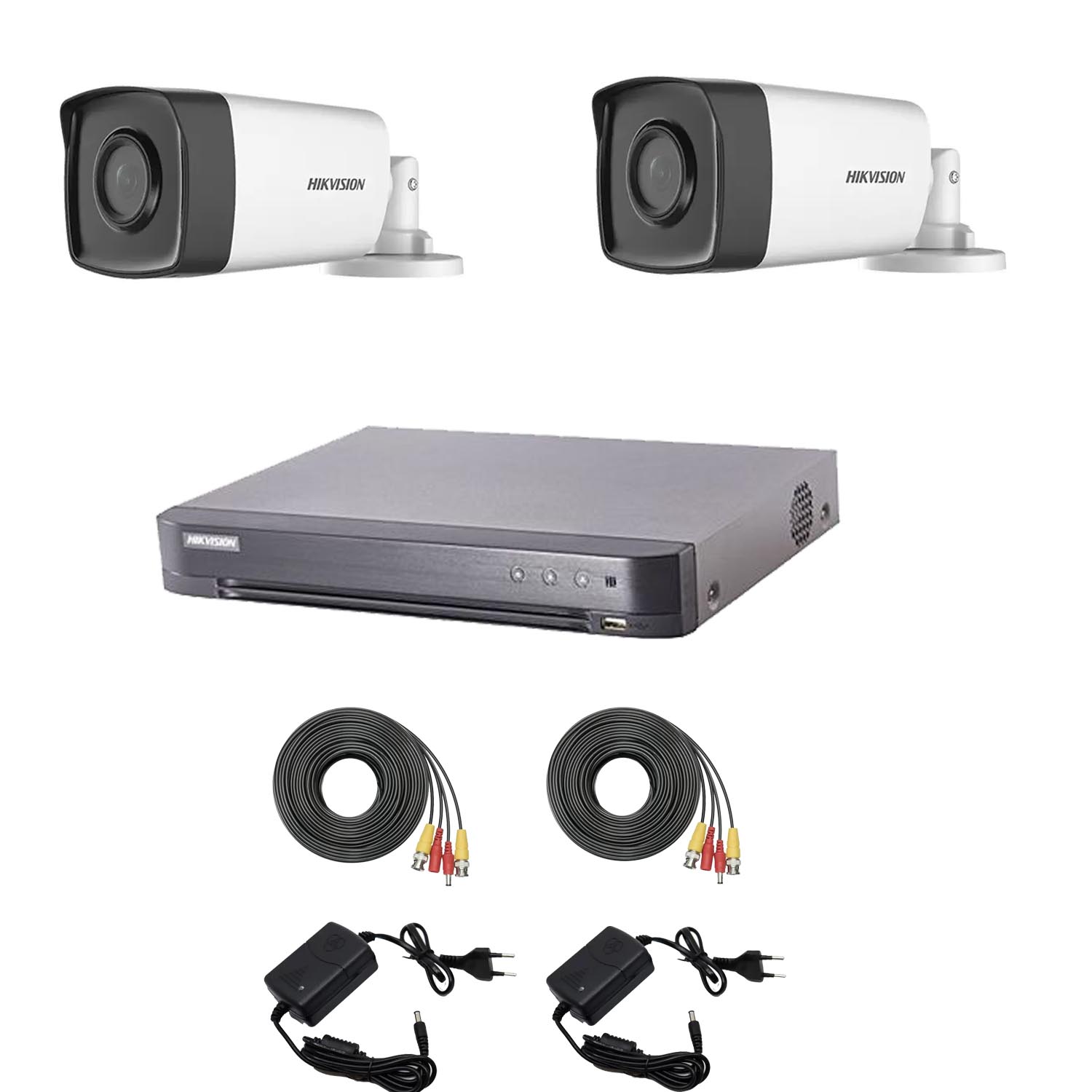 Sistem supraveghere Hikvision cu 2 camere 2MP, DVR 4 canale si accesorii