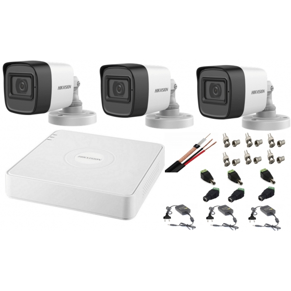 Alege un sistem de supraveghere Hikvision complet, potrivit pentru locuinte, birouri, magazine sau spatii comerciale. Kitul include 3 camere Turbo HD 2MP cu microfon incorporat, iluminare IR de pana la 30 m si un DVR Hikvision 4 canale, pentru monitorizare video si audio clara, zi si noapte. Este o solutie practica, usor de instalat, cu accesorii incluse pentru punerea in functiune.