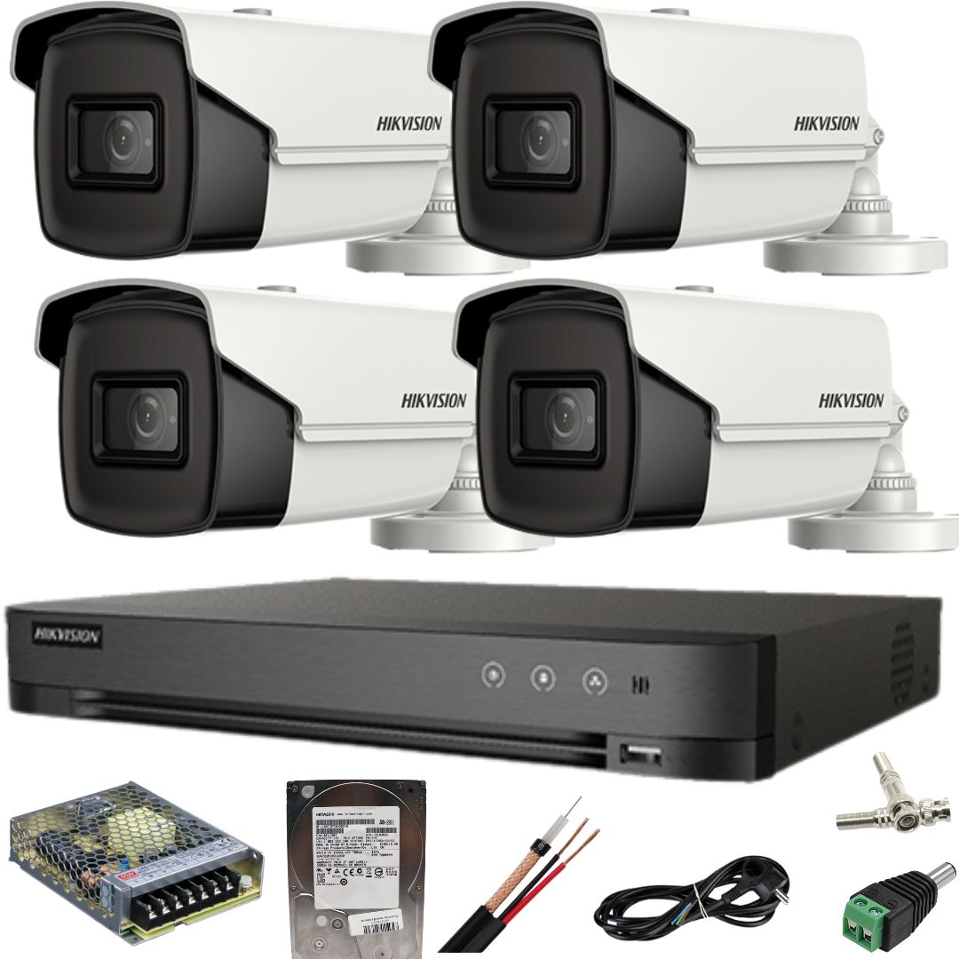 - 4 x camera supraveghere Hikvision 8MP, lentila 3.6 mm, IR 80 m