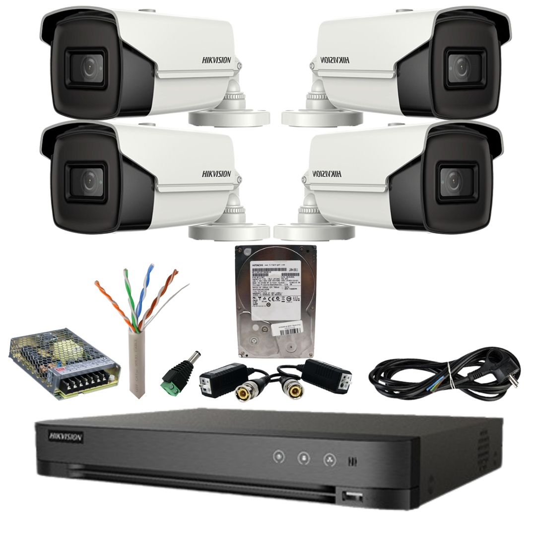 Sistem supraveghere Hikvision cu 4 camere 8MP, DVR AcuSense, HDD 1TB