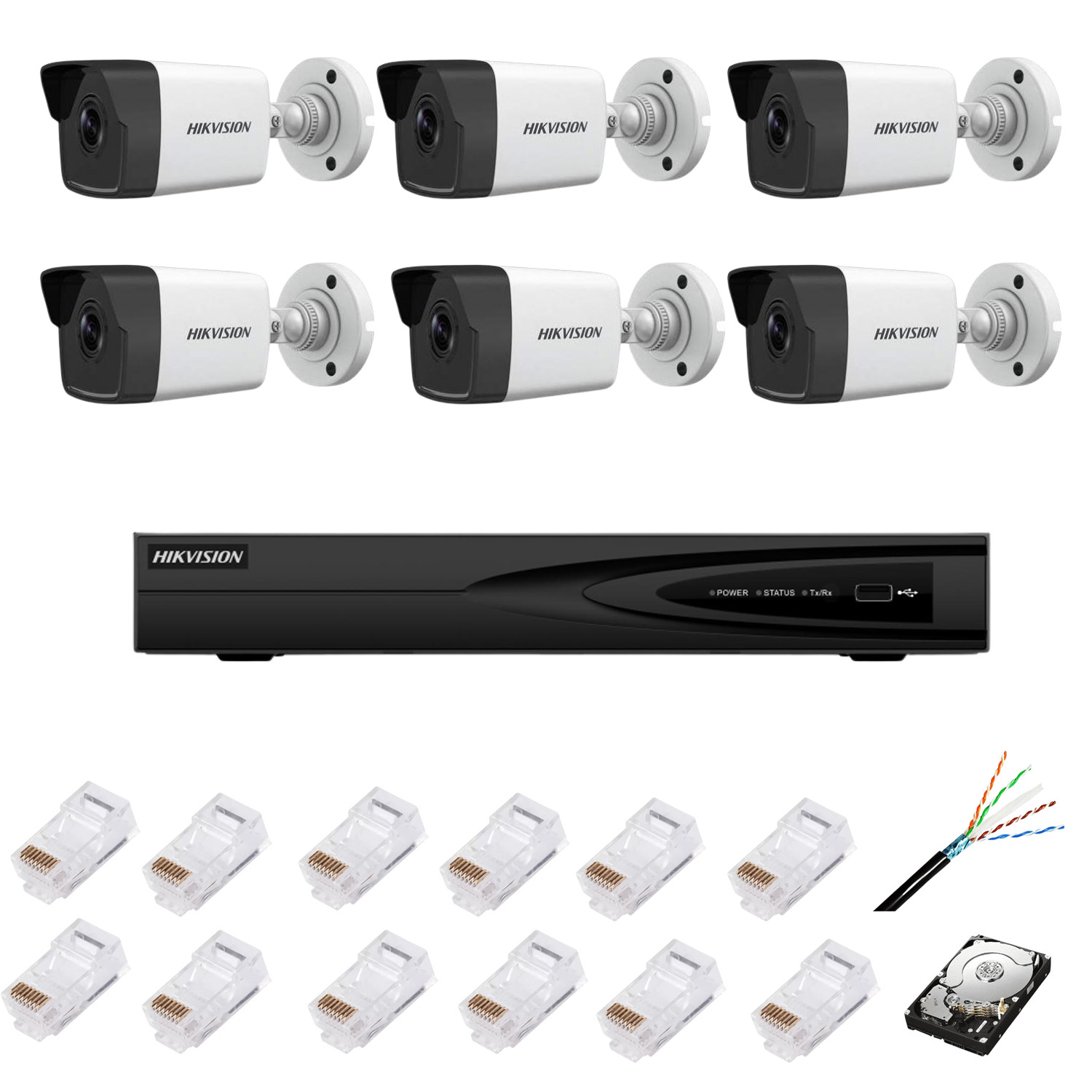 Sistem supraveghere Hikvision cu 6 camere IP 4MP, NVR 8 canale 4K