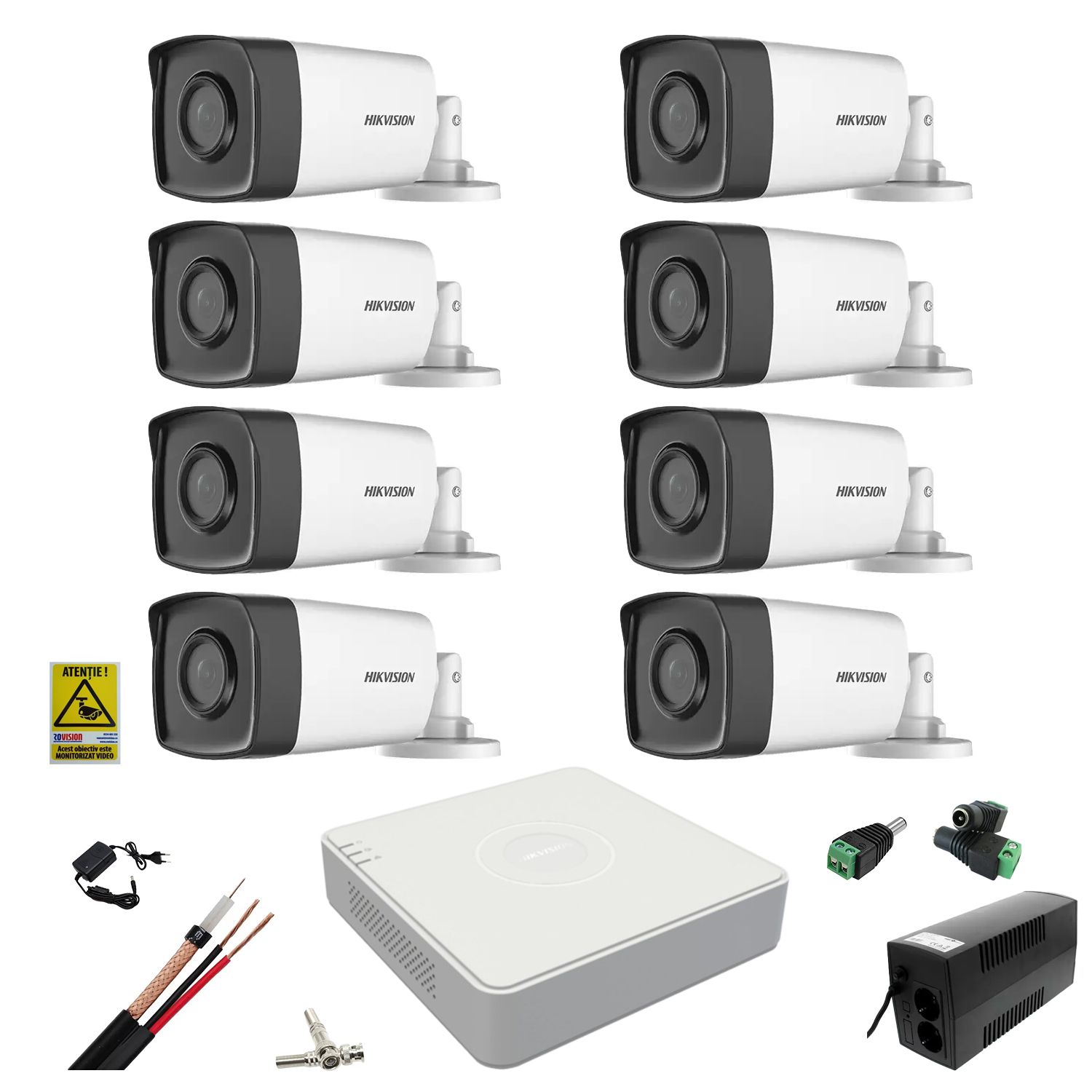 Sistem supraveghere Hikvision cu 8 camere 2MP, DVR 8 canale si UPS 360W