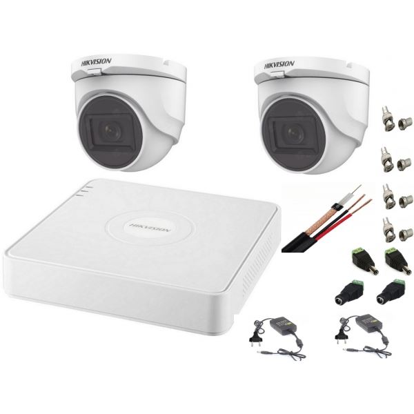 - 2 x camera dome Hikvision DS-2CE76D0T-ITMFS, 2 MP, lentila 2.8 mm, microfon