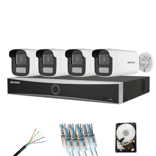 Protejeaza eficient locuinta, curtea sau spatiul comercial cu acest sistem supraveghere IP Hikvision complet, pregatit pentru instalare. Pachetul include 4 camere 8MP 4K cu microfon integrat, tehnologie Smart Hybrid Light pentru imagini clare zi si noapte, plus NVR AcuSense cu 8 canale pentru detectie inteligenta si reducerea alarmelor false. Este o solutie potrivita pentru monitorizare exterioara, cu stocare inclusa si accesorii utile pentru montaj.