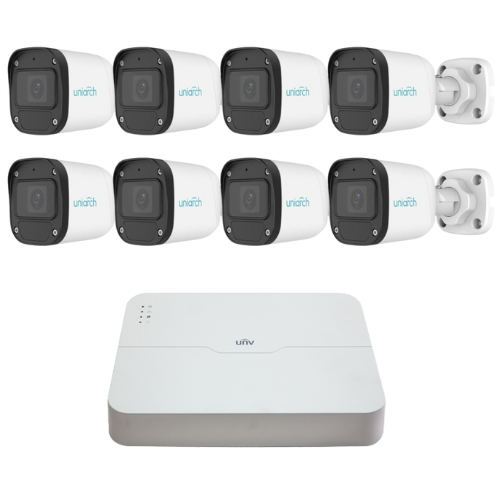 Sistem supraveghere IP Uniarch cu 8 camere 2MP Full HD, microfon si NVR PoE 8 canale
