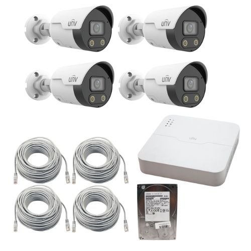 Sistem supraveghere IP UNV cu 4 camere 4MP ColorHunter, PoE, NVR 4 canale, HDD 1TB