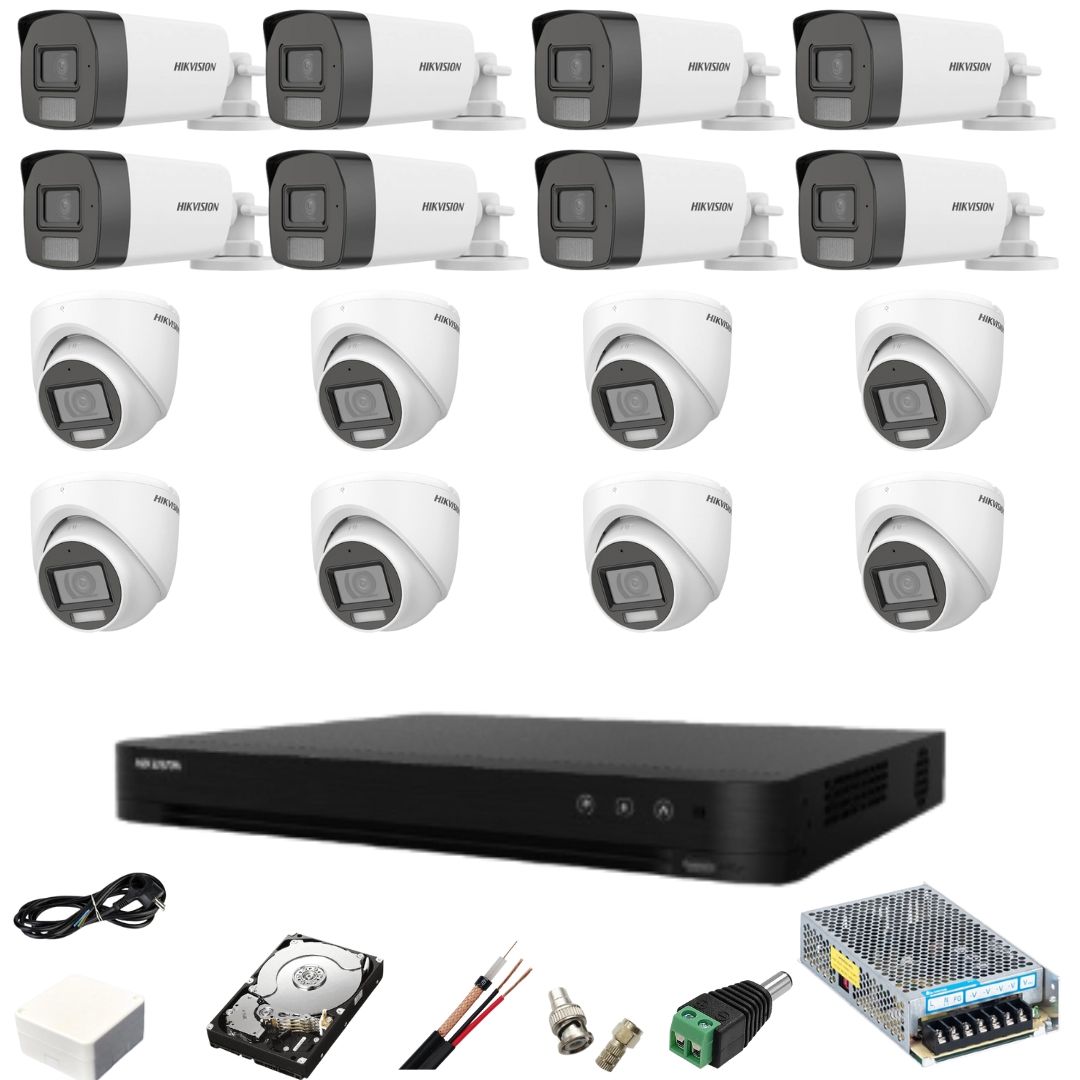 8X Camera de supraveghere Hikvision Dual Light, 5MP, lentila 3.6mm, IR 40m, WL 40m, Microfon, Bullet