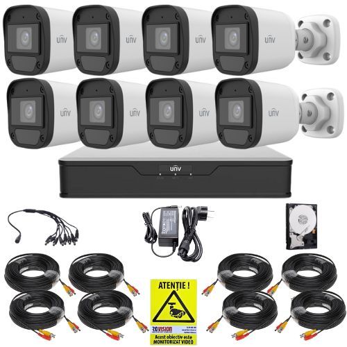 Sistemul de supraveghere Uniview cu 8 camere 5MP este o solutie completa si usor de instalat pentru protectia locuintei, curtii, magazinului sau a spatiilor comerciale. Kitul include camere bullet cu tehnologie ColorHunter, capabile sa ofere imagini color pe timp de noapte, DVR hibrid cu 8 canale, HDD de 1TB si toate accesoriile necesare pentru punerea in functiune.