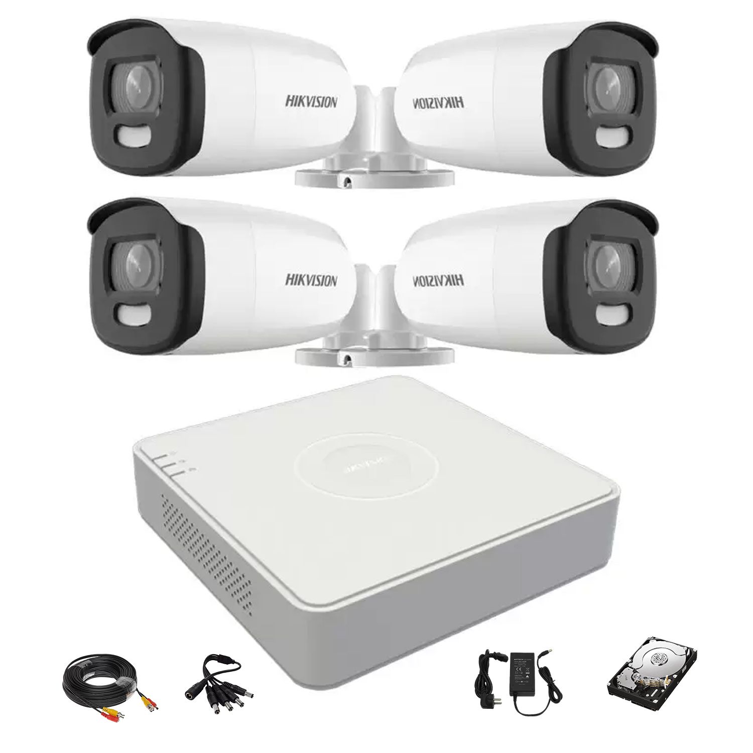 Sistem supraveghere video Hikvision 4 camere exterior ColorVu 5MP, lumina alba 40m, DVR 4 canale Hikvision, accesorii, hard disk SafetyGuard Surveillance