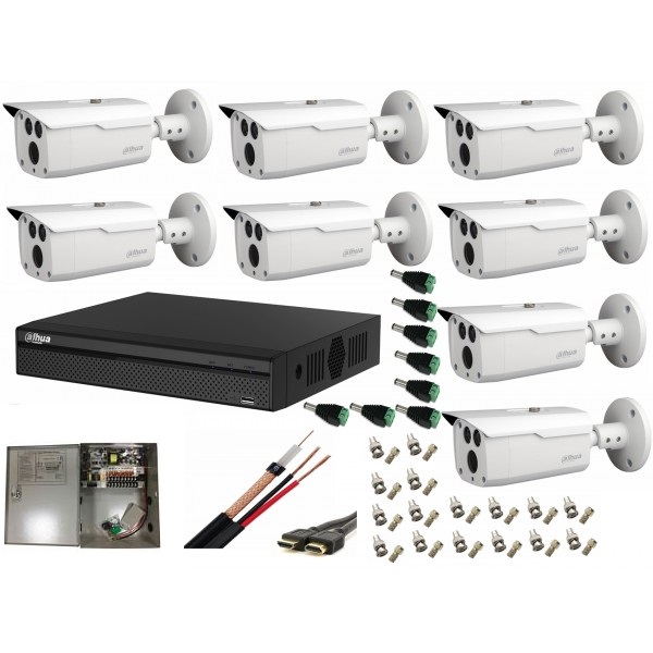 Sistem supraveghere video profesional cu 8 camere Dahua 2MP HDCVI IR 80m ,full accesorii sursa cu backup ( acumulator ) SafetyGuard Surveillance