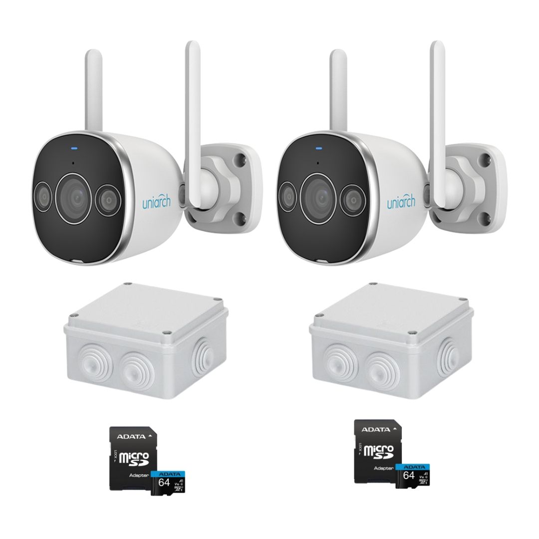 Sistem supraveghere Wi-Fi Uniarch, 2 camere, 3MP, IR 20m, Lumina alba 10m, Audio bidirectional, Doze montaj, Card MicroSD 64GB SafetyGuard Surveillance