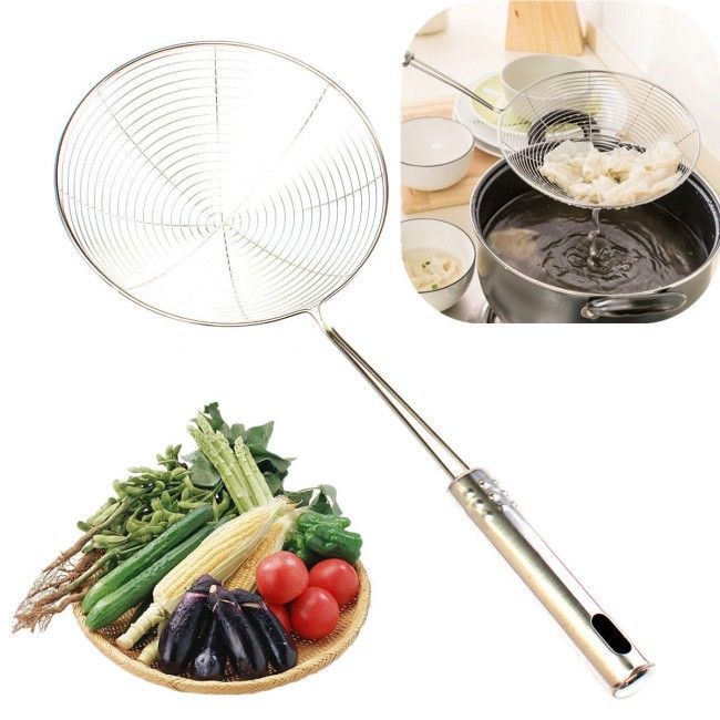 Ușurează-ți munca în bucătărie cu o sită din inox practică, ideală pentru scos carne, jumări și alte preparate din ulei sau grăsime. Forma tip „spider” ajută la scurgerea rapidă a excesului de ulei, iar mânerul din inox oferă o prindere sigură și confortabilă.