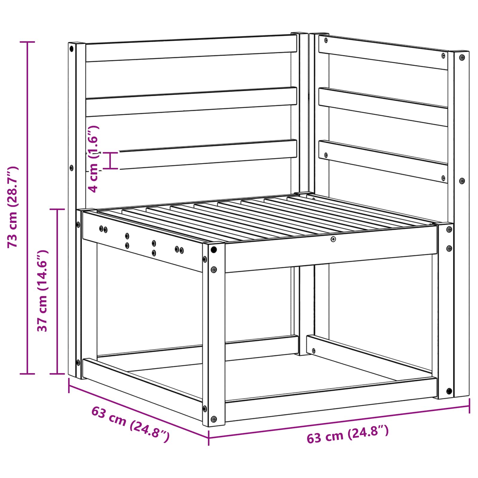 - Dimensiuni generale: 63 x 63 x 73 cm (L x l x î)