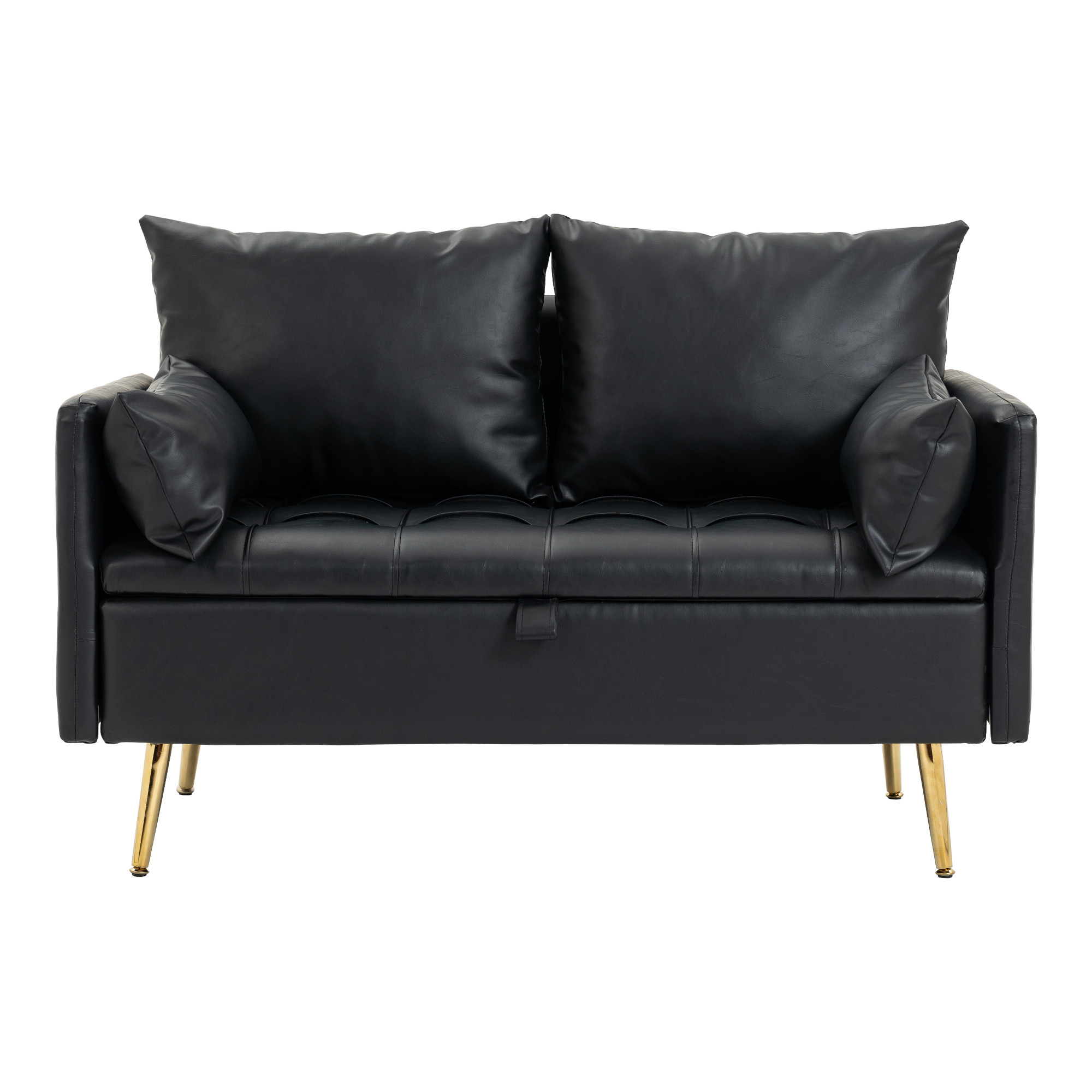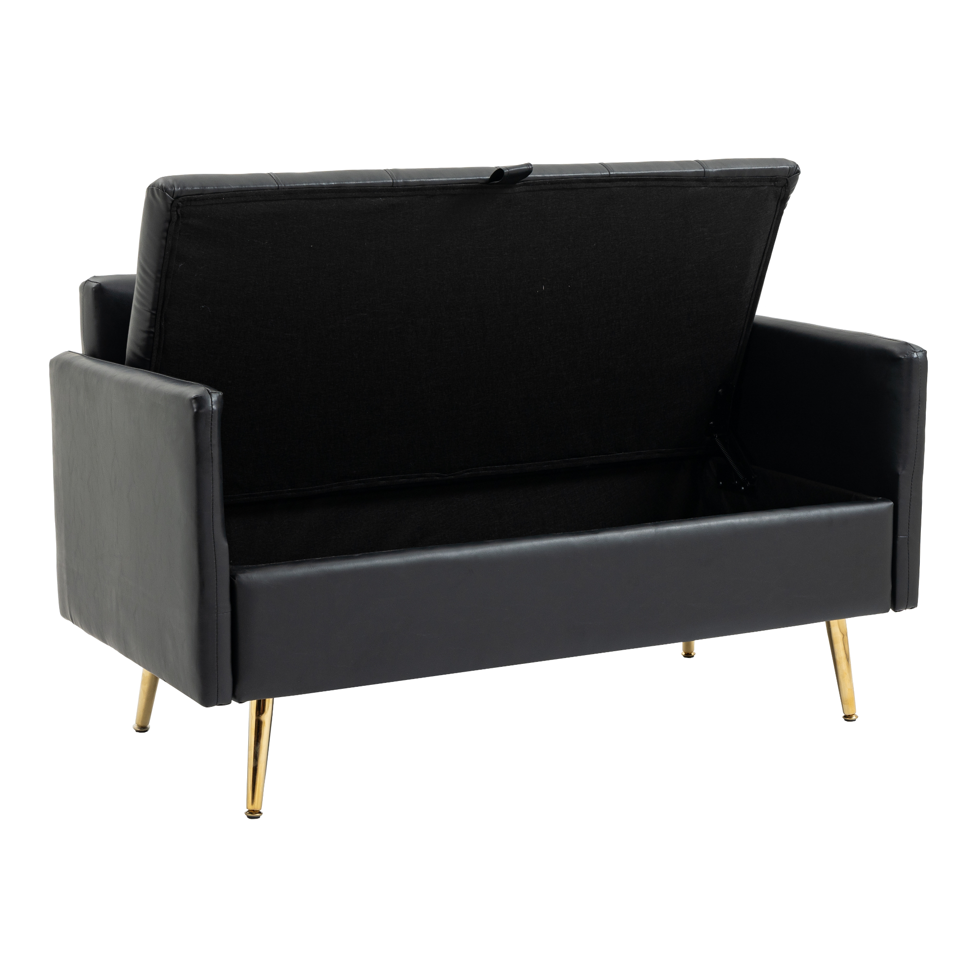 Unter der aufklappbaren Sitzfläche verbirgt sich ein praktischer Stauraum, der sich ideal für Kissen, Decken und andere Gegenstände eignet. Die vier Füße sorgen für einen stabilen Stand und ergänzen das moderne und zeitlose Design der Couch.