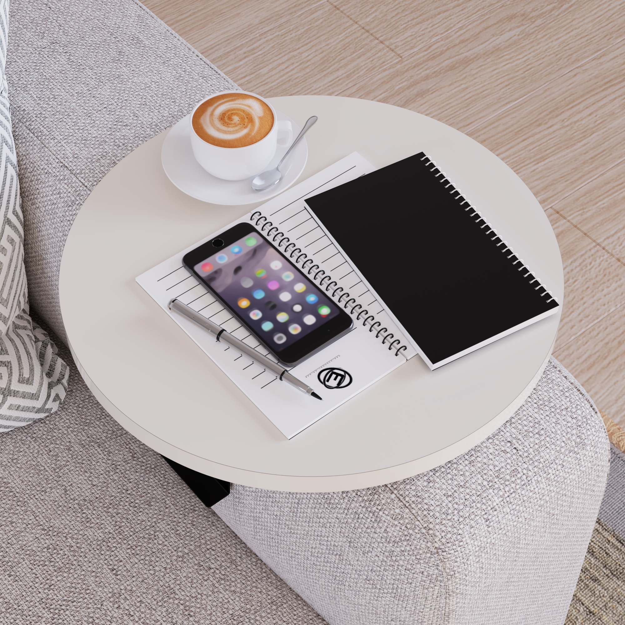 - Tischplatte (Ø): 34 cm