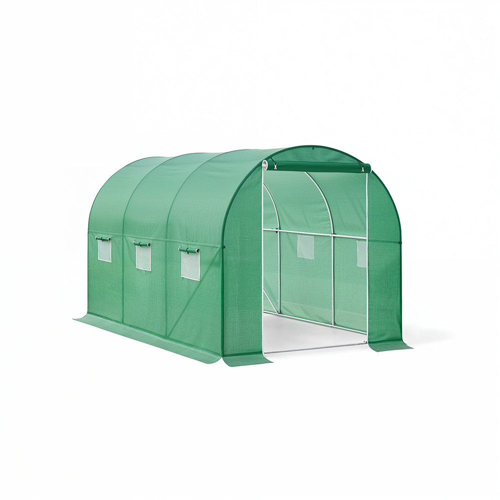 Modelul este potrivit pentru grădini de dimensiuni mici și medii, oferind spațiu suficient pentru organizarea culturilor și acces ușor în interior. Folia verde din polietilenă PE contribuie la protecția plantelor, iar cadrul metalic susține stabil întreaga structură pentru utilizare sezon după sezon.