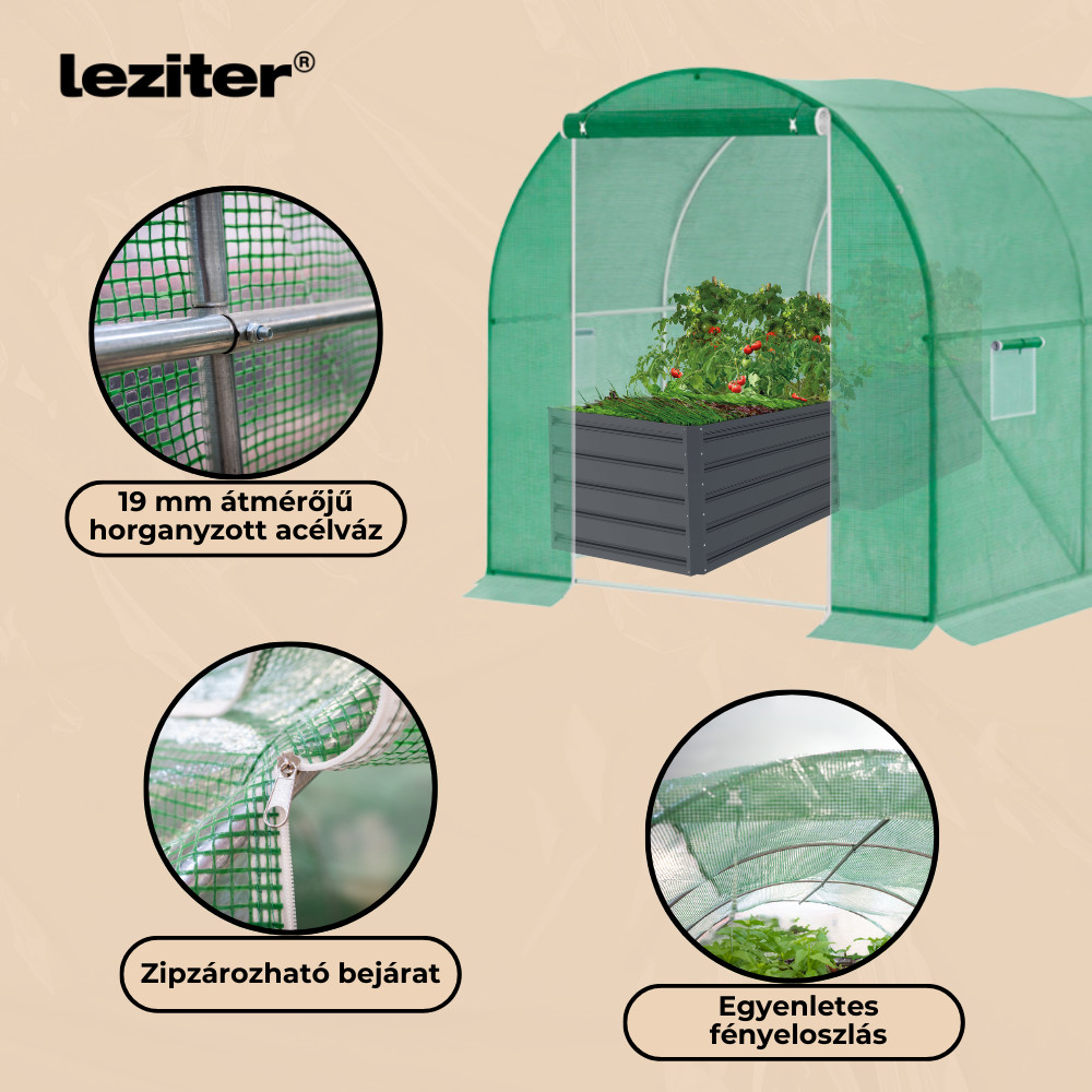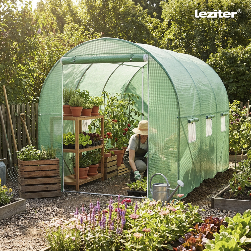 Solarul de grădină Leziter este soluția practică pentru cultivarea legumelor, răsadurilor, fructelor sau plantelor ornamentale în condiții mai bine controlate. Cu un design tip tunel, acest solar cu folie ajută la menținerea unui microclimat favorabil, protejând culturile de vânt, ploi ușoare, insecte și variații de temperatură.