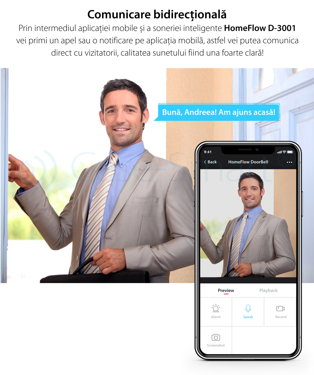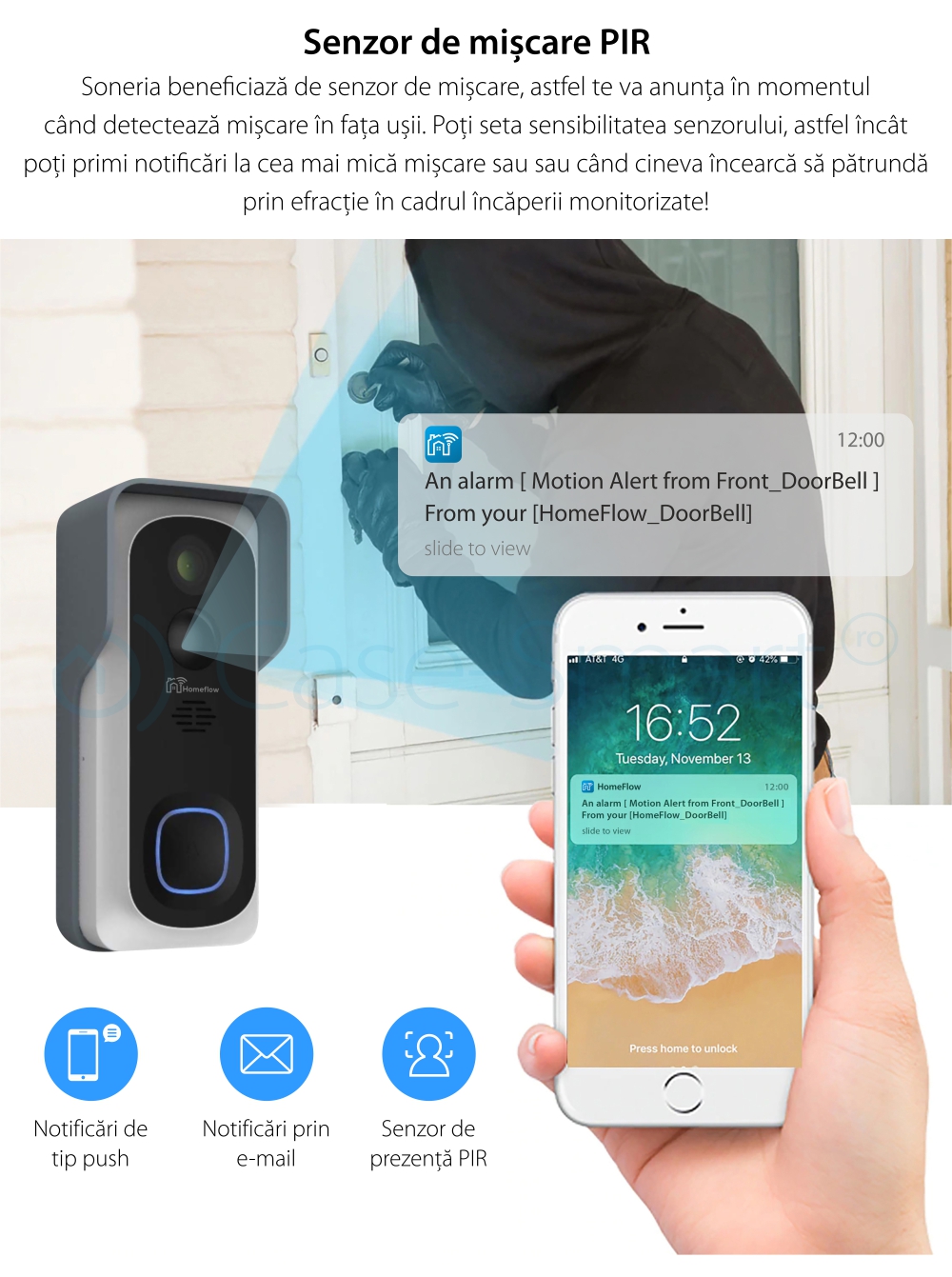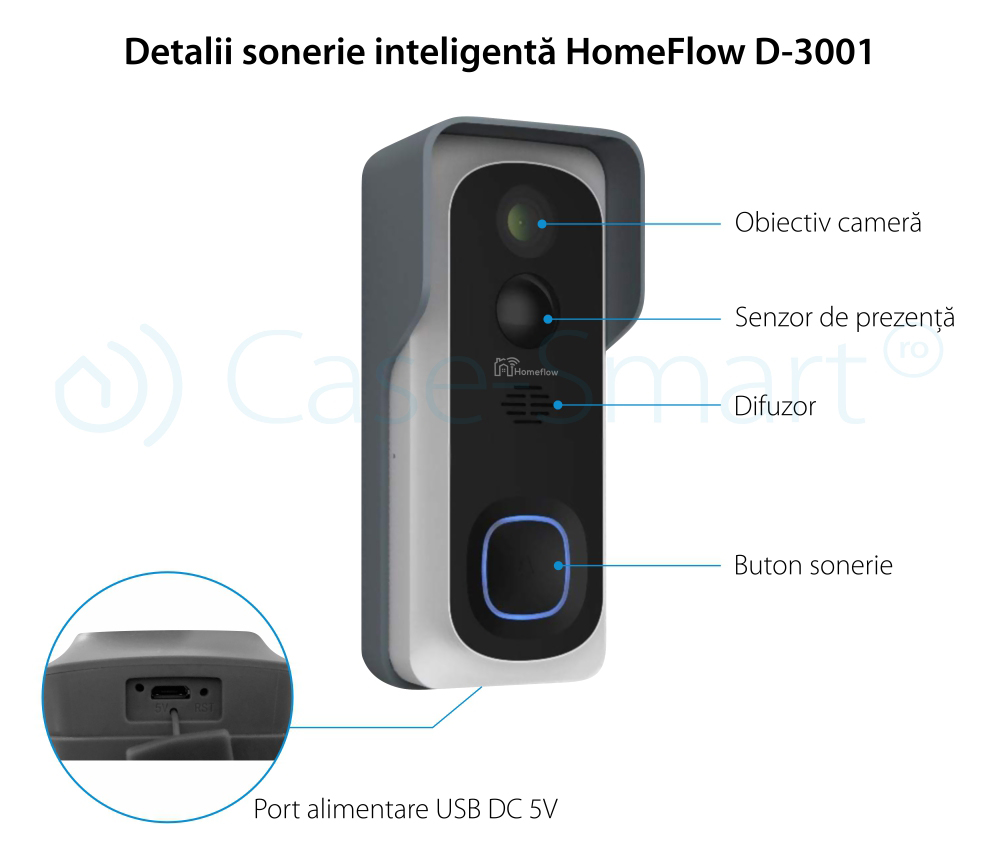 Sonerie inteligenta wireless cu monitorizare video Homeflow D-3001, Comunicare bidirectionala, Detectie miscare, Notificari, Modul sonerie interior inclus SmartElectro IntelligentHouse