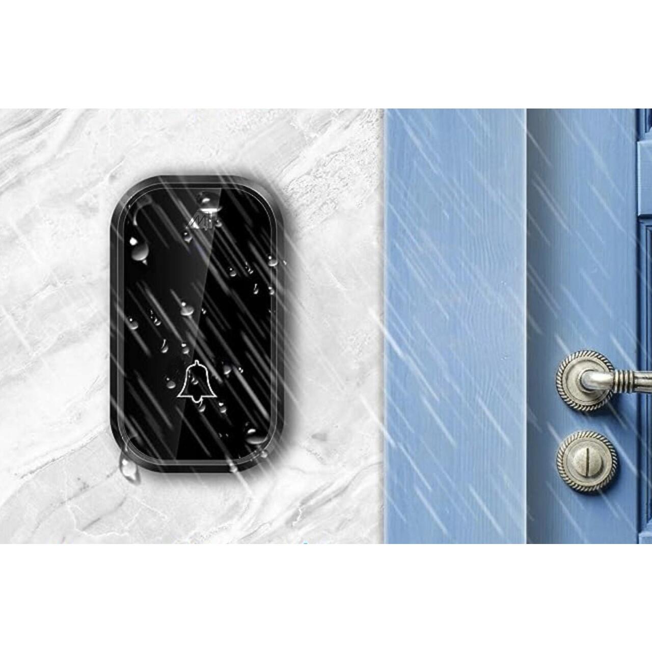 Sonerie wireless, Malatec, 200 m, 52 tonuri, alimentare retea, display LCD, afisaj temperatura, negru, IP44, 7.5x4.5x1.7 cm