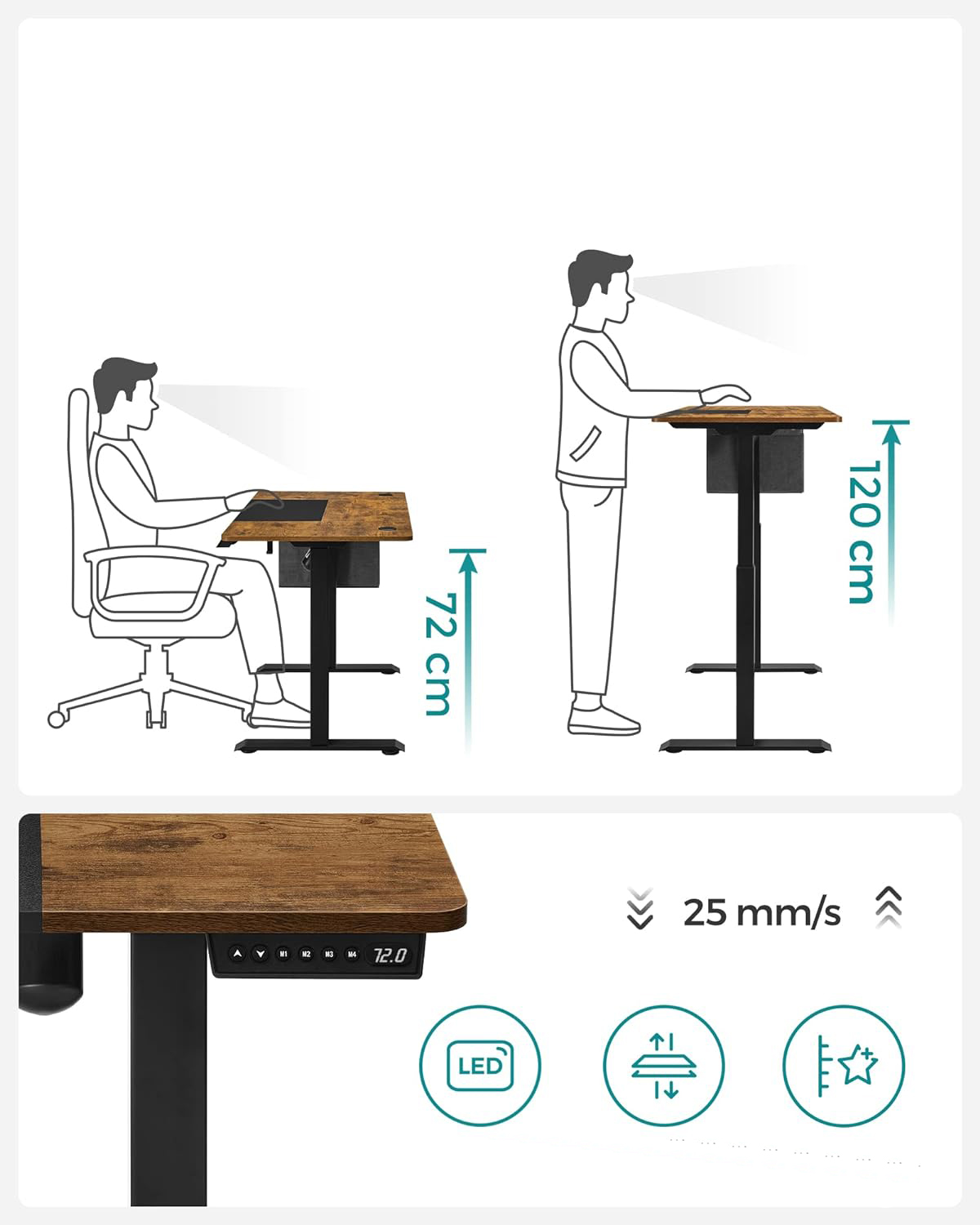SONGMICS Birou cu reglaj electric pe inaltime, memorie cu 4 inaltimi, 60x120x(72-120)cm, maro rustic Household NewTrend