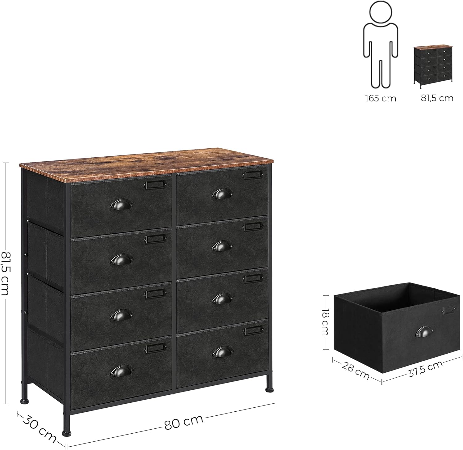 SONGMICS Comoda cu cadru metalic si 8 sertare din textil, stil industrial, 80x30x82cm, maro rustic si negru Household NewTrend