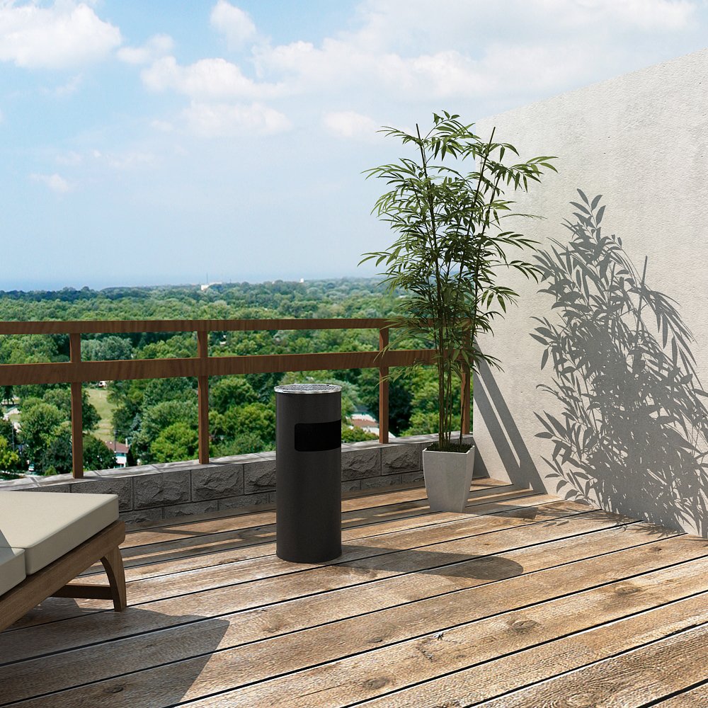 SONGMICS Cos de gunoi cu scumiera pentru exterior, din inox, galeata interioara detasabila, tip stativ, 61x25 cm, negru Household NewTrend